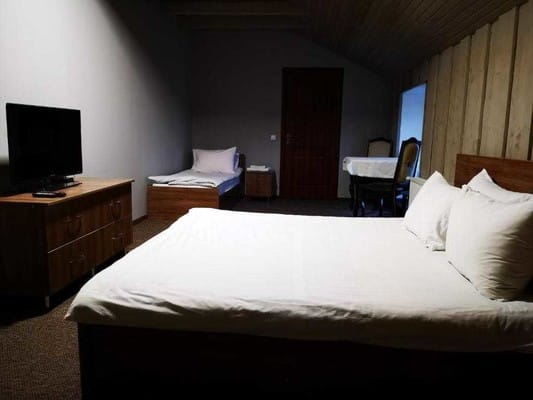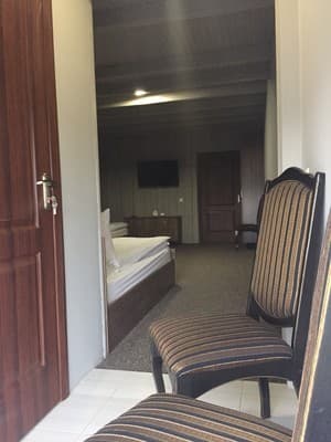 На территории комплекса находится детская игровая площадка, большой бассейн, беседки для вечерних посиделок и для любителей весело провести время – караоке. К услугам отдыхающих предоставлен ресторан, где подаются блюда украинской и европейской кухни на выбор. В питание включены завтраки, доставка в номер по договоренности с администрацией.