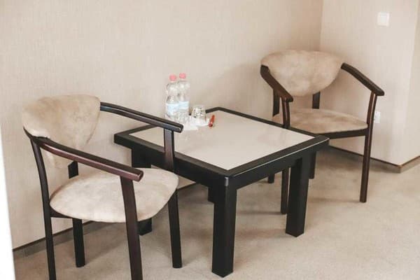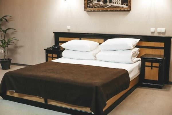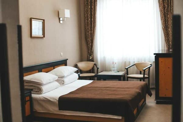 Вашему вниманию предоставляется 30 номеров, с категориями комфорта «люкс», «полулюкс» и «семейный люкс». Каждый из них соответствует всем стандартам и критериям международного уровня. Классический стиль оформления интерьера и современная комплектация мебели и техники делают ваше время пребывания в отеле незаметным. Повышенный уровень комфорта обеспечен возможностью регулировать климат с помощью кондиционера, также есть мини-бар, холодильник.