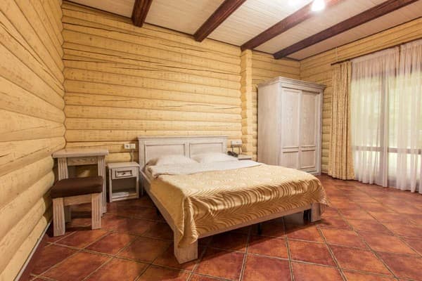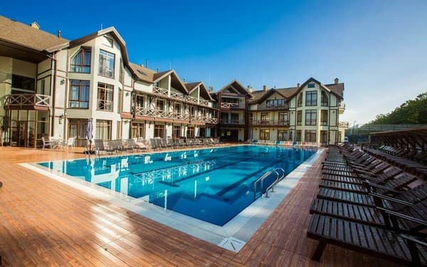 На территории комплекса находится свой оборудованный пляж, озеро с беседками, сауна.